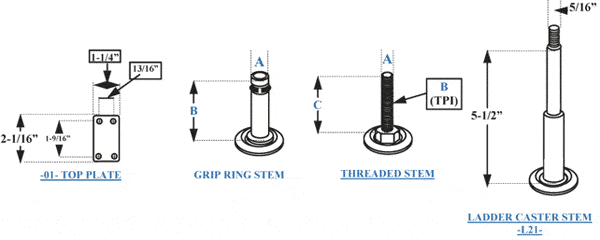 | Options For WC 3000 Series (Add option abbreviation to end of the caster part #) |