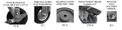 | Pedal Wheel Brake (Avail. on 3 ") | PWB |