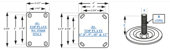 For WC 5660 only Overall Size: 2-1/2" x 3-3/4" Bolt Hole Pattern: 1-3/4" x 2-7/8" Slotted to 3" Attaching Bolt Size: 5/16" |